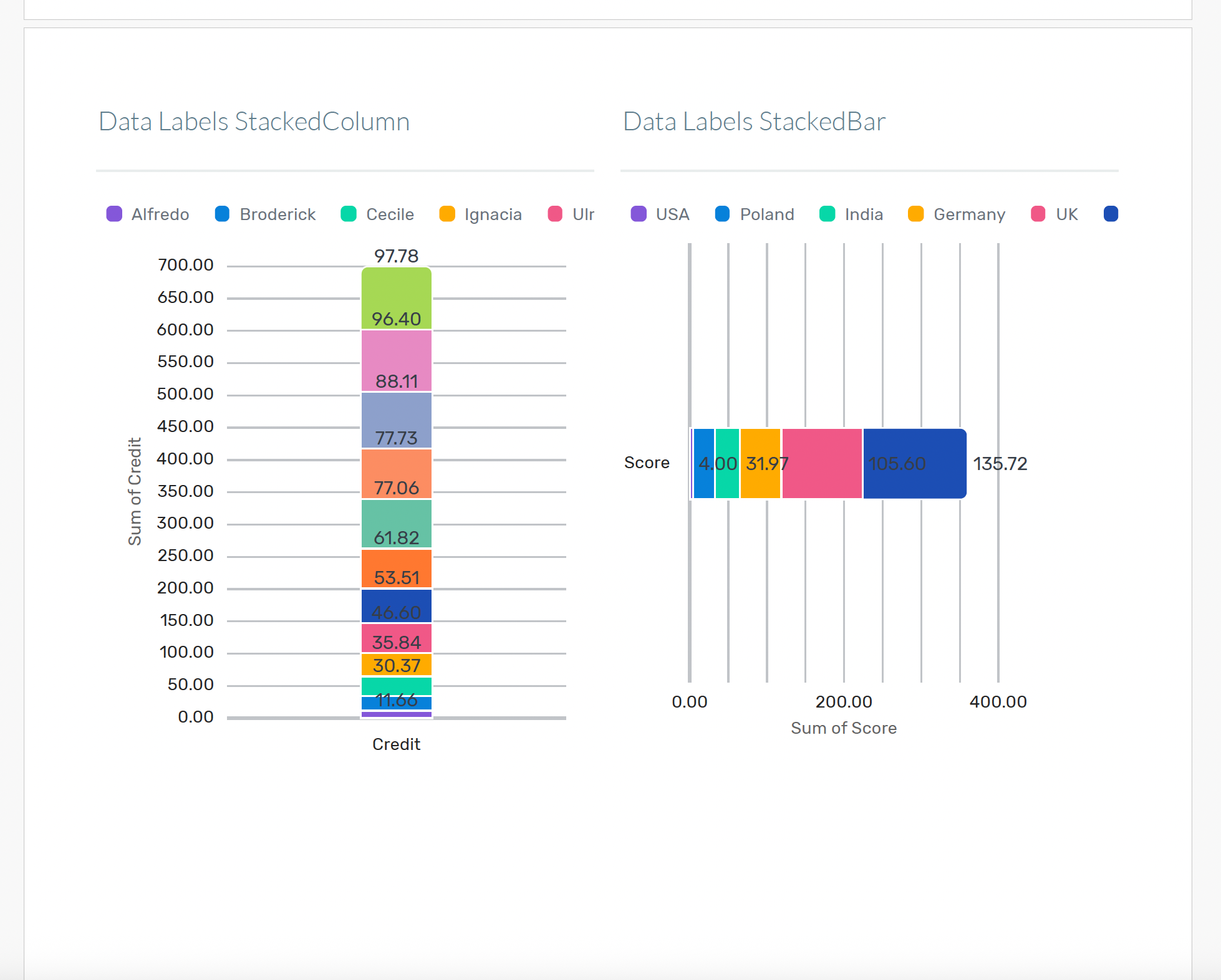 Numbers and labels can get jumbled or cut off in stacked charts, leading to unreadable exports and a poor user experience.