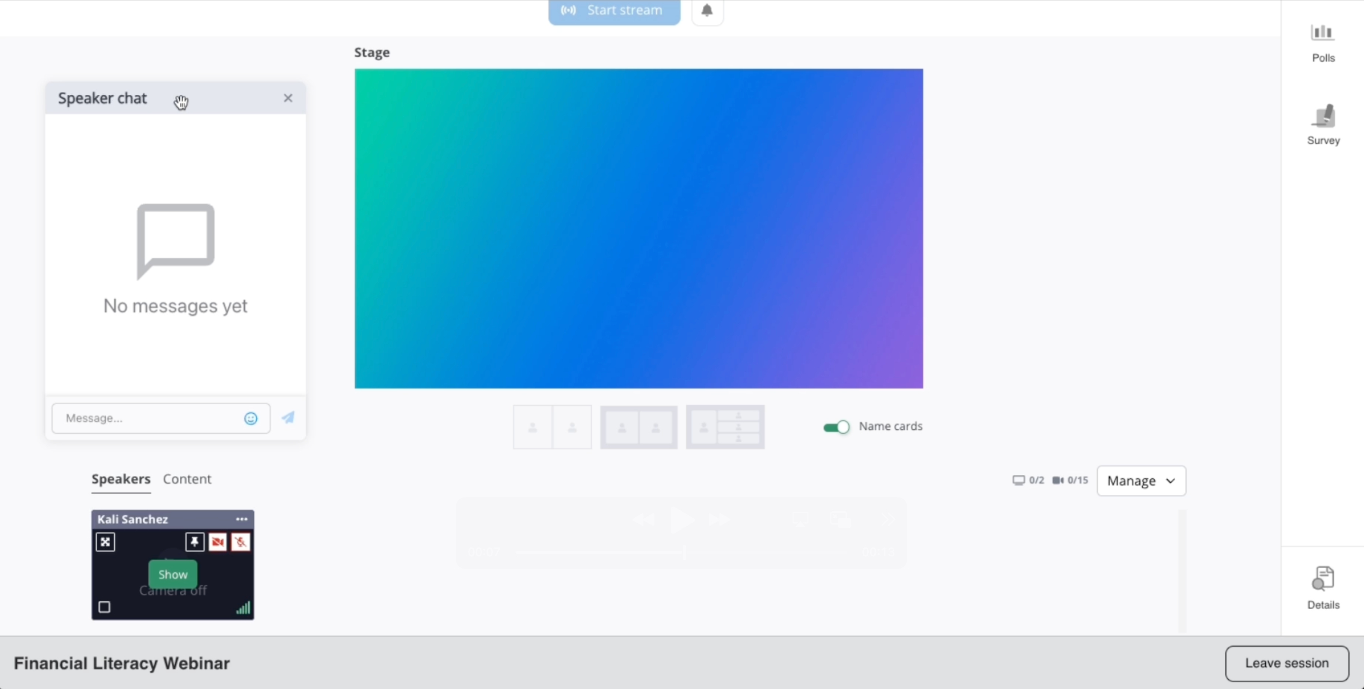 Benefit: Users can move the chat box to avoid blocking important content and keep all studio content optimally visible during presentations.