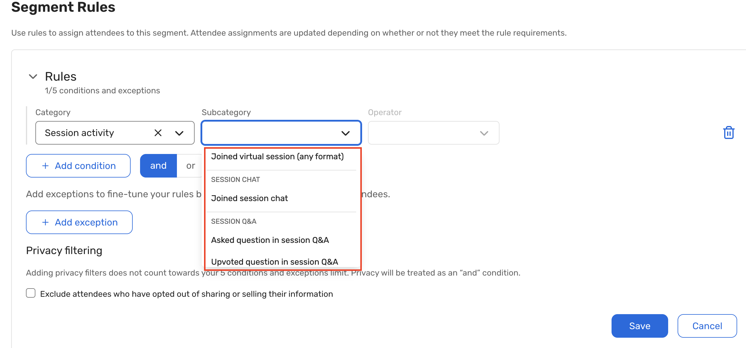 From content interactions to exhibitor engagement, from Q&A to discussions, from booth visits to appointments, Audience Segments now uses a wider range of attendee activity attributes to automatically segment attendees based on their actions. Previously, planners were limited to a narrow slice of activity, session enrollment, and participation.