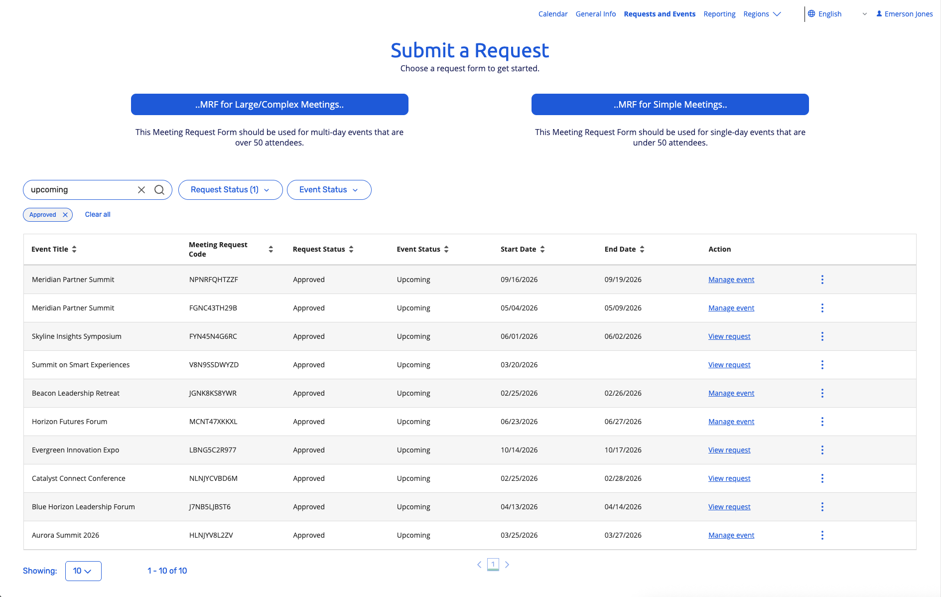 What's Changed: Meeting Request Forms can now keep submissions in intake until an admin or designated user manually creates a Standard, Webinar, or Essentials event based on permissions and licensing. Events created this way maintain a 1:1 link to the originating Meeting Request, inherit mapped standard and custom fields, and automatic event creation remains available for configured forms.