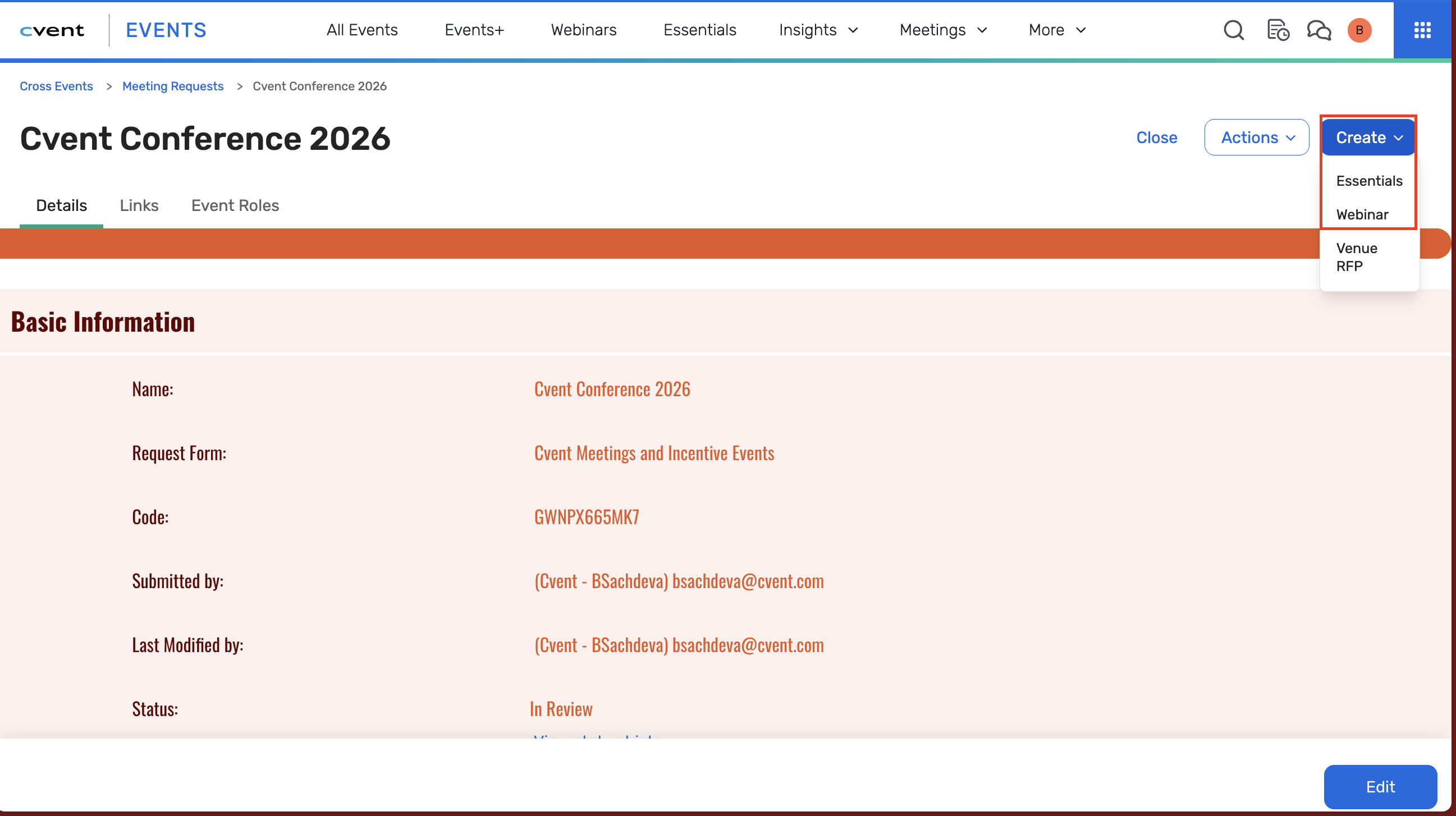 Benefit: This change supports organizations that require review, validation, or approvals before committing resources or creating events and webinars. It strengthens governance, accuracy, and traceability by aligning event setup with internal policies and preserving a clear link from Meeting Request to Event.