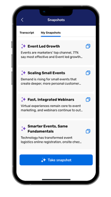 Attendees can return to these saved moments after the event via the My Snapshots tab, where they can review, copy, and share what they captured.