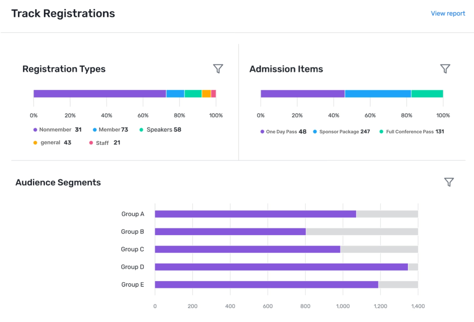 These audience segments were also integrated into Registration Insights, allowing her to compare performance and engagement across different groups. She quickly identified which segments had high conversion rates and which required more targeted outreach.