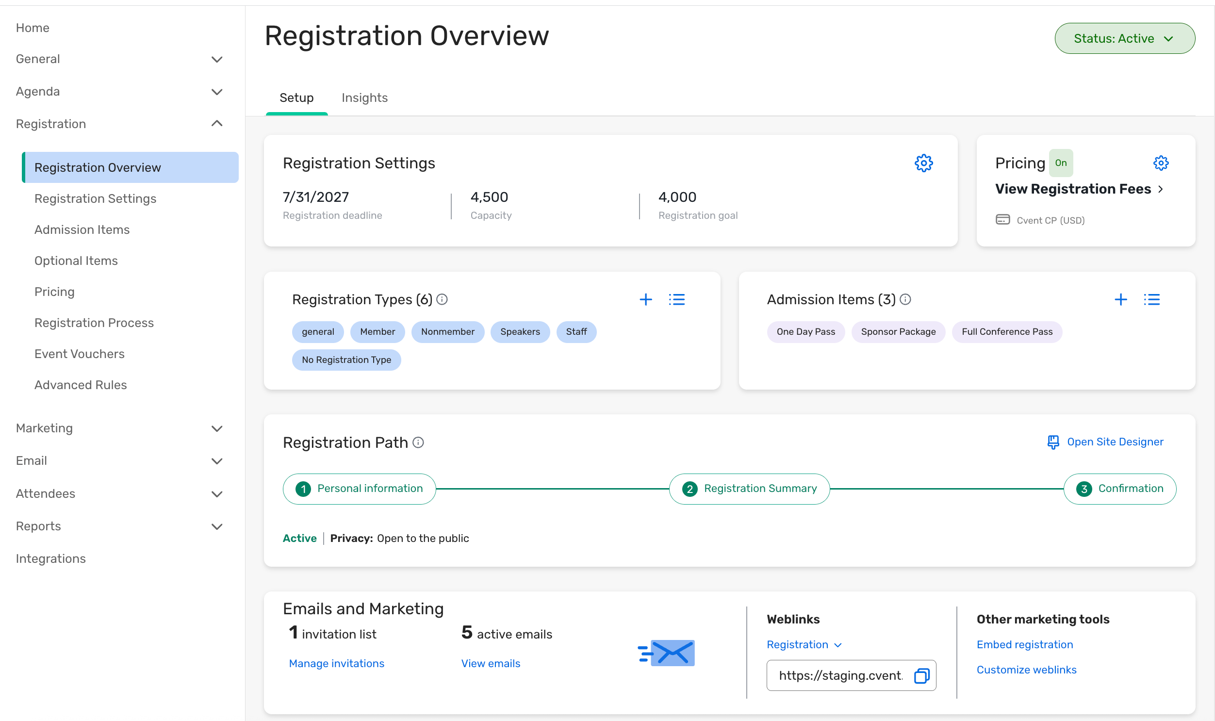 When registration opened, Emma didn’t have to wait for a weekly report or export spreadsheets. Instead, she returned to the Registration Overview and accessed Registration Insights.