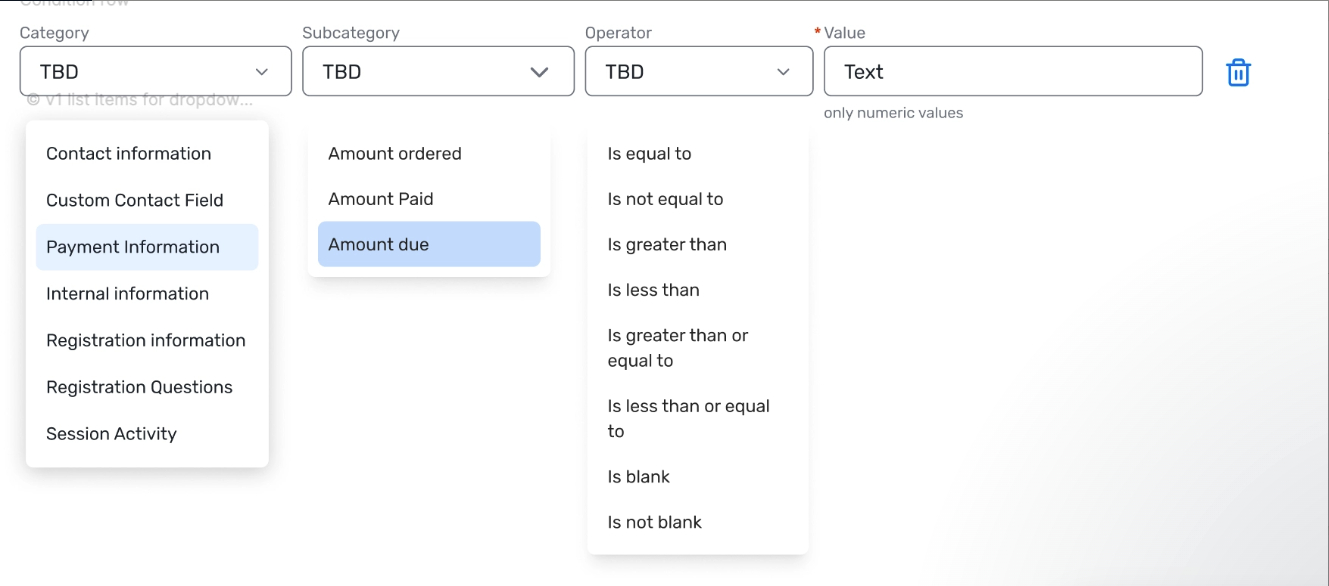 We are introducing a new Payment Information rule category in Dynamic Segments, exposing Total Amount Ordered, Amount Paid, and Amount Due as segment filters for events with Payments enabled. This enhancement enables planners to build continuously updating segments (e.g., unpaid/outstanding balance, partial payers, high-value or complimentary attendees) without manual exports or spreadsheet work.