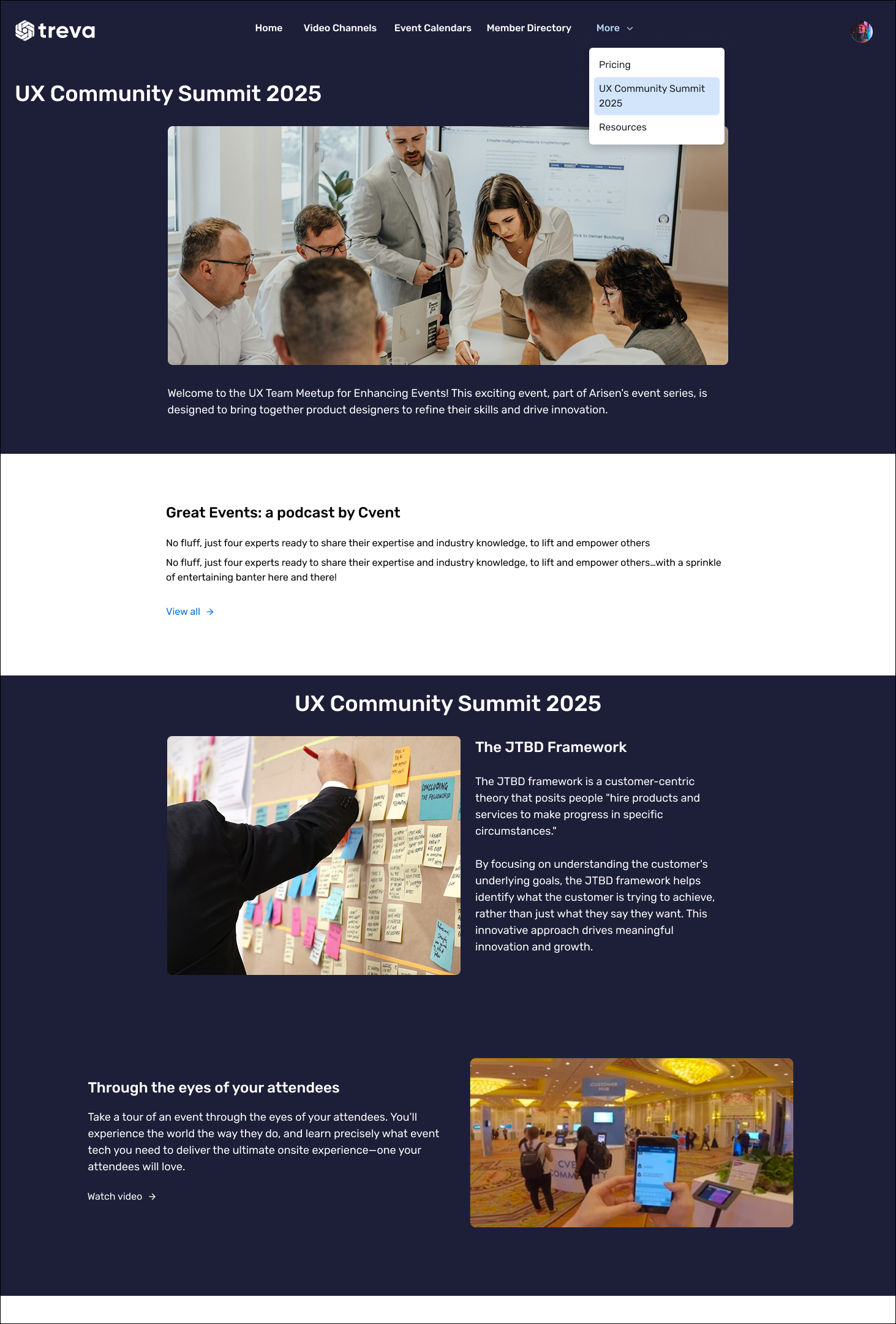 Events+ additional support for lightweight custom pages and navigation updates on the website.