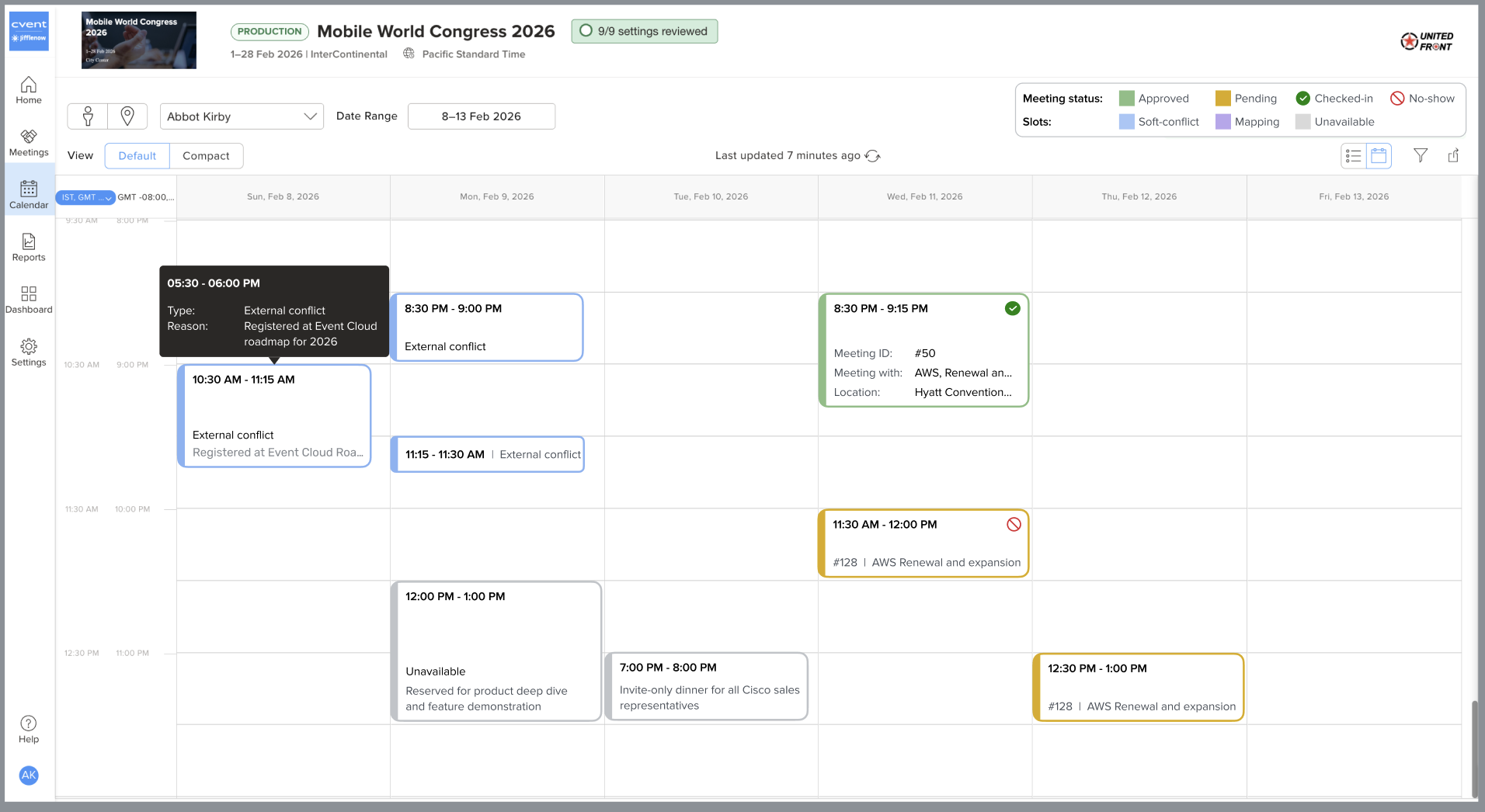 Conflicts are visible in the Master Calendar view, helping Meeting Managers quickly identify overlaps among meetings and sessions.Mobile application support