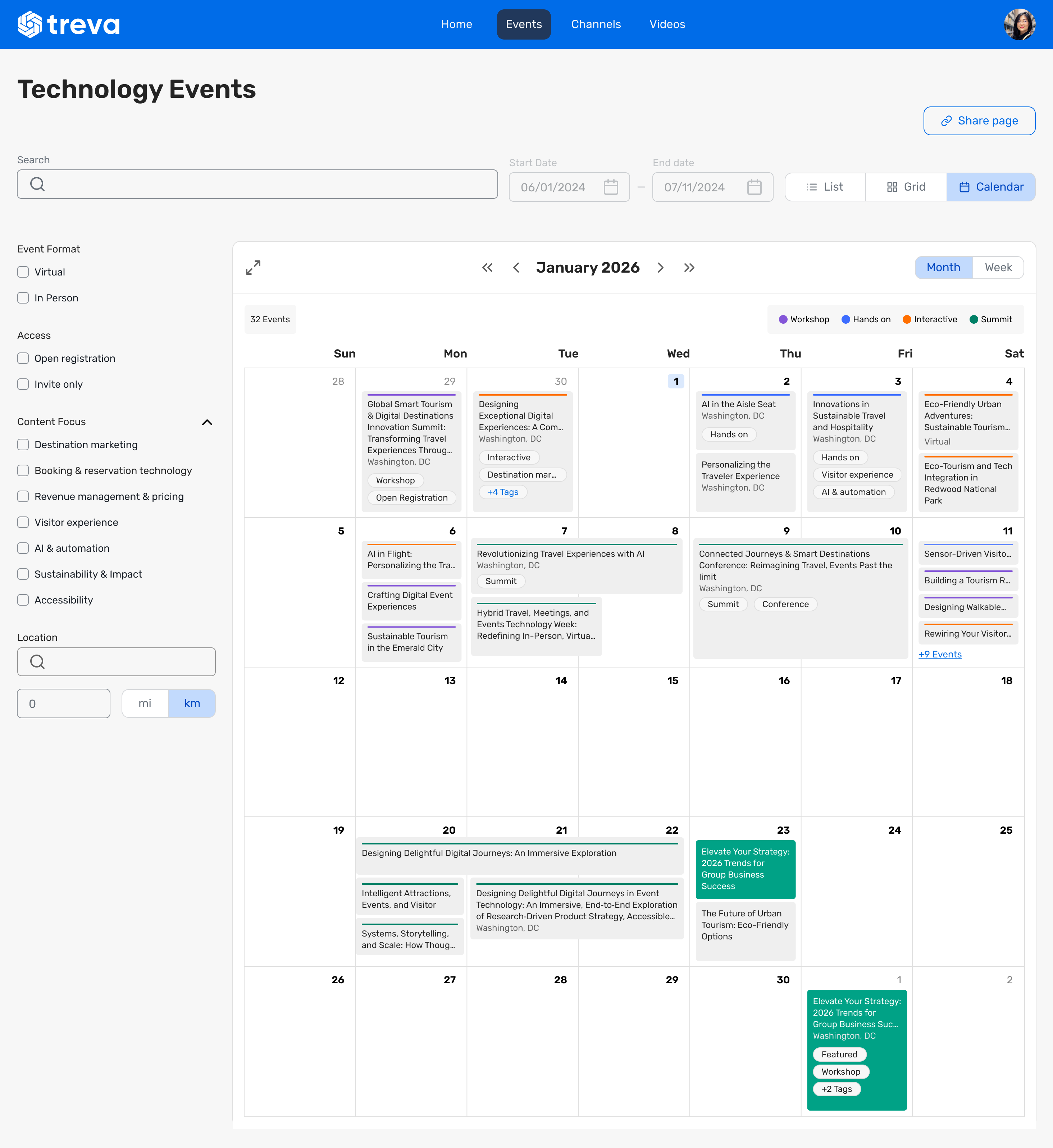 We are adding a new full monthly and weekly calendar view to make it easier for both attendees to see upcoming events, and for event organizers to plan their future events and see what others may be running concurrently.