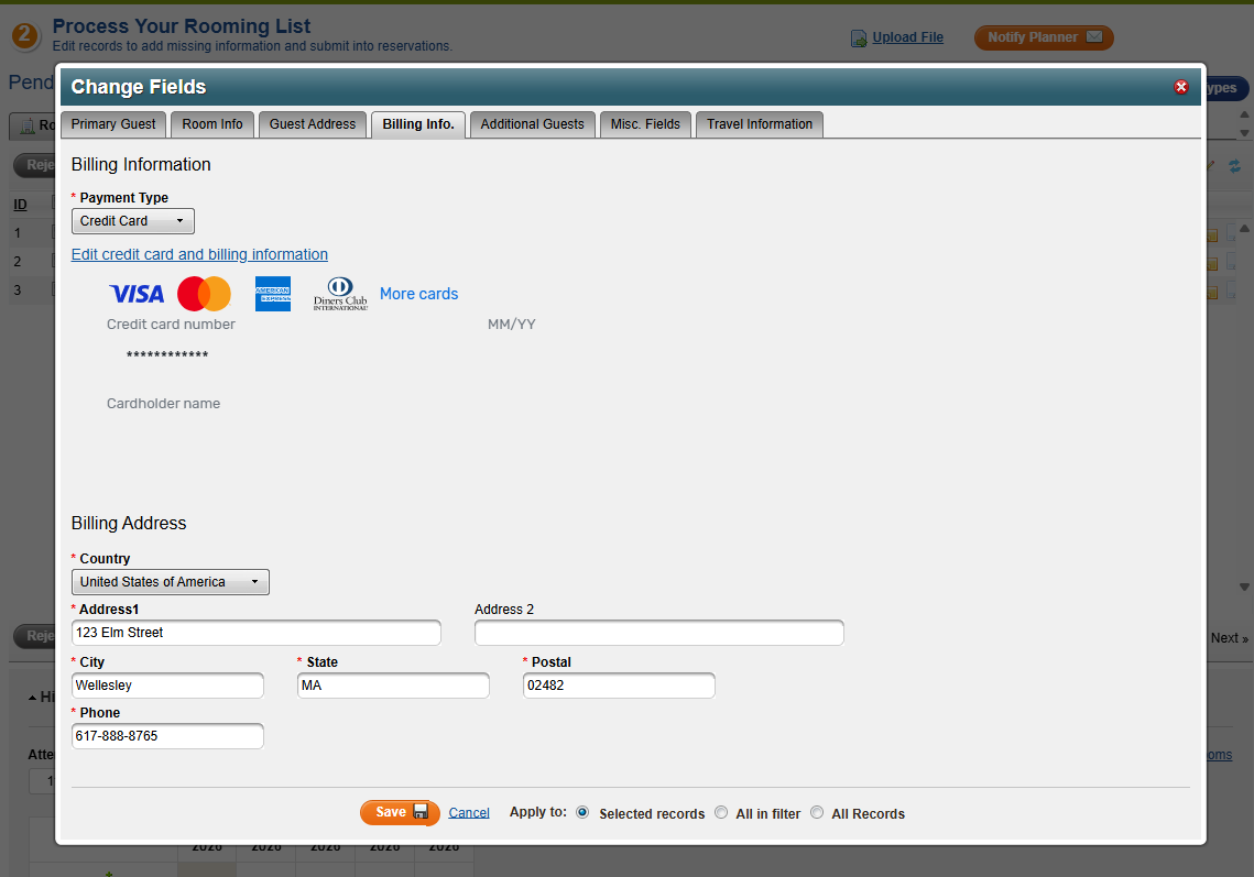 With this update, users can now update all billing information when processing reservations in the Room List Manager (RLM)—either on a single reservation or via bulk editing across some or all reservations in a list.